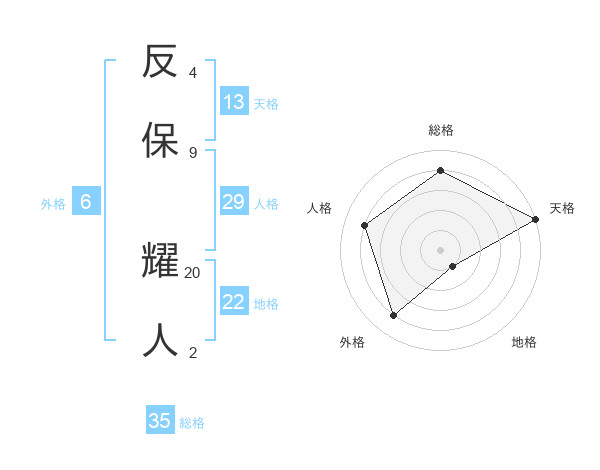 反保 耀人さんの総格は35画の4点!