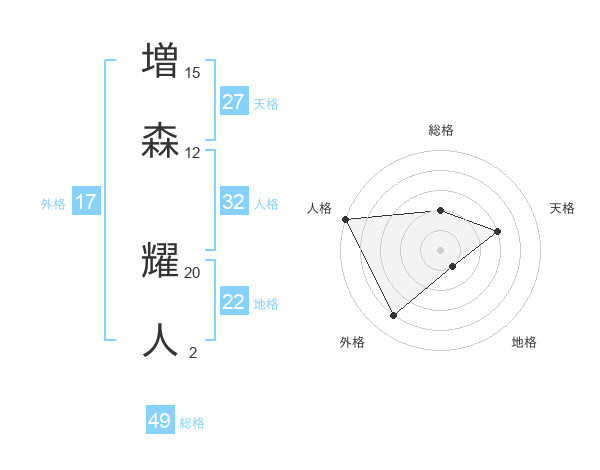 増森 耀人さんの総格は49画の2点!
