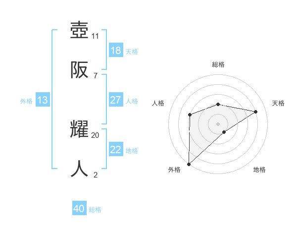 壺阪 耀人さんの外格は13画の5点!