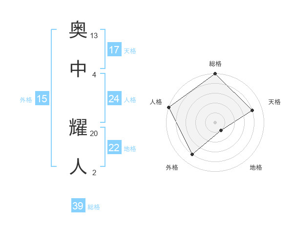 奥中 耀人さんの総格は39画の5点!