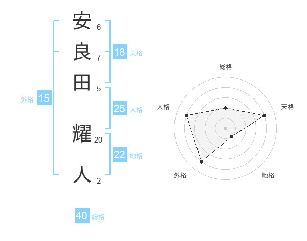 安良田 耀人さんを姓名の画数から五運を鑑定