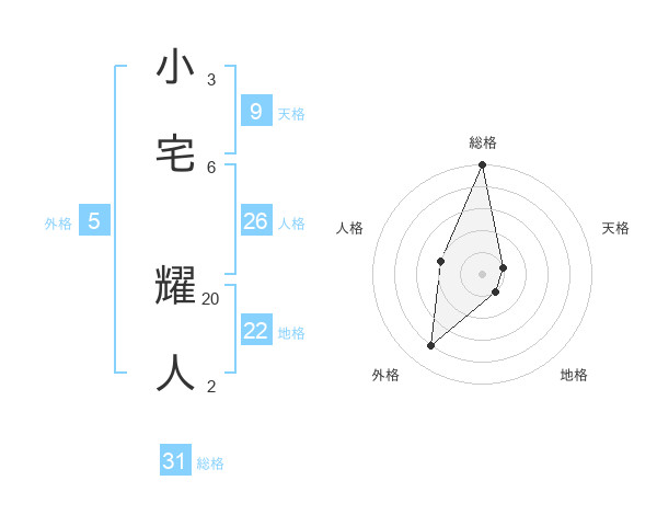 小宅 耀人さんの総格は31画の5点!