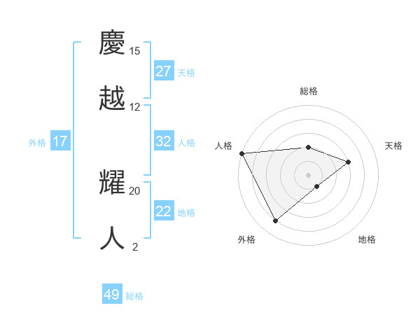 慶越 耀人さんの総格は49画の2点!