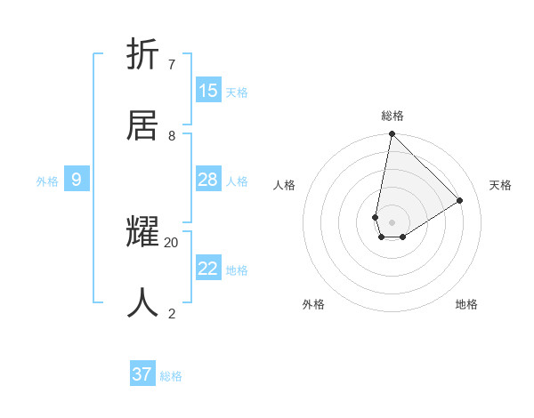 折居 耀人さんの総格は37画の5点!