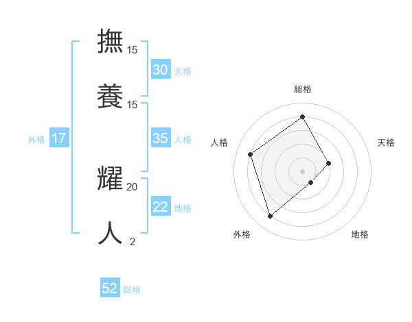 撫養 耀人さんの総格は52画の4点!