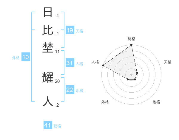 日比埜 耀人さんを姓名の画数から五運を鑑定