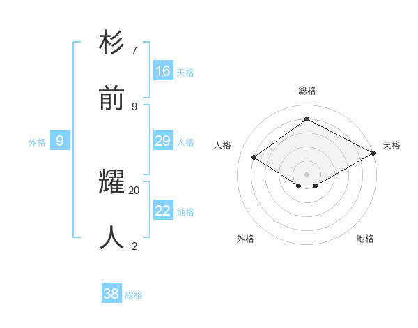 杉前 耀人さんの総格は38画の4点!