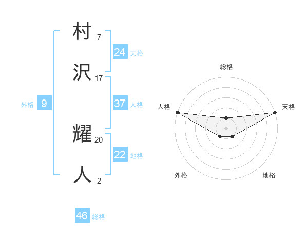 村沢 耀人さんの総格は46画の1点!