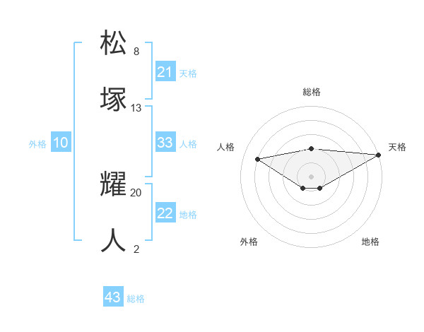 松塚 耀人さんの総格は43画の2点!