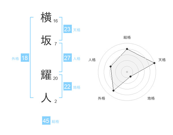 横坂 耀人さんの総格は45画の4点!