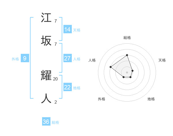 江坂 耀人さんの総格は36画の3点!