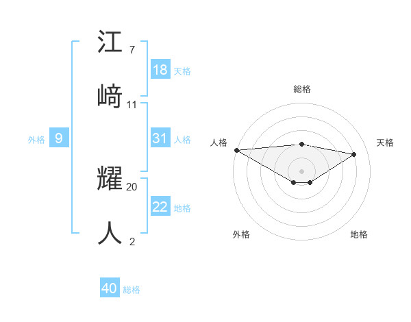 江﨑 耀人さんを姓名の画数から五運を鑑定