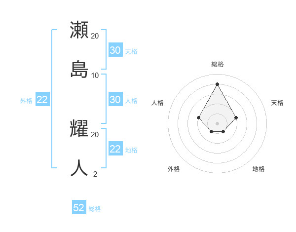 瀬島 耀人さんの総格は52画の4点!