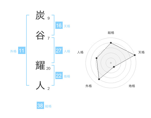 炭谷 耀人さんの総格は38画の4点!