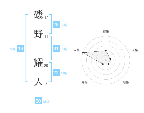 磯野 耀人さんの総格は50画の2点!