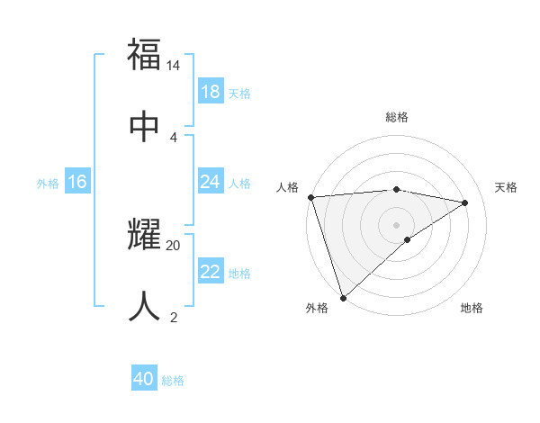 福中 耀人さんの天格は18画の4点!