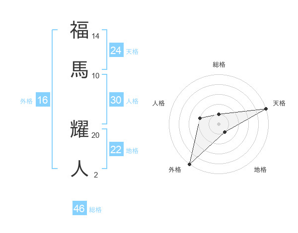 福馬 耀人さんの総格は46画の1点!
