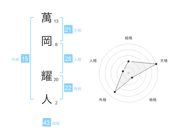 萬岡 耀人さんを姓名の画数から五運を鑑定