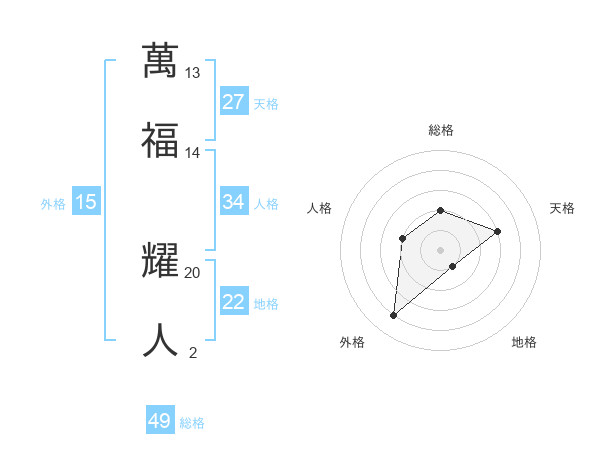 萬福 耀人さんの総格は49画の2点!