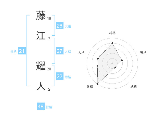 藤江 耀人さんの総格は48画の4点!