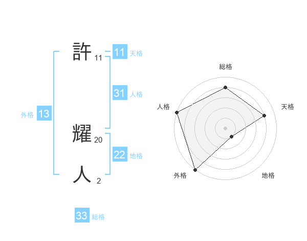 許 耀人さんの外格は13画の5点!