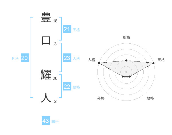 豊口 耀人さんの天格は21画の5点!