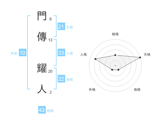 門傳 耀人さんを姓名の画数から五運を鑑定
