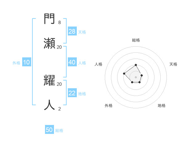 門瀬 耀人さんの総格は50画の2点!