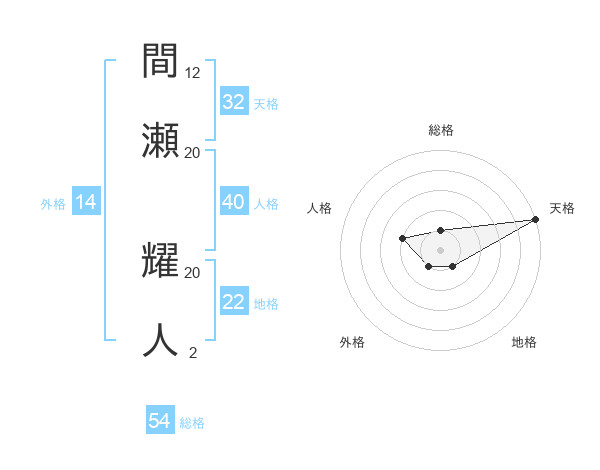 間瀬 耀人さんの天格は32画の5点!
