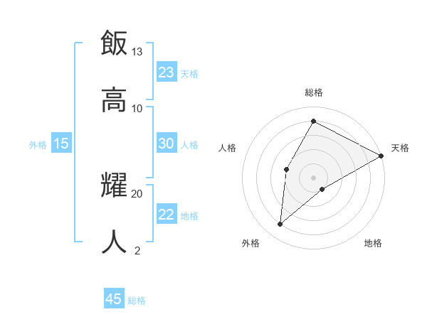 飯高 耀人さんの総格は45画の4点!