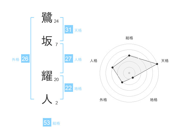 鷺坂 耀人さんの総格は53画の3点!