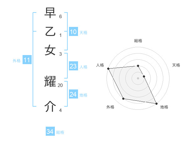早乙女 耀介さんの総格は34画の2点