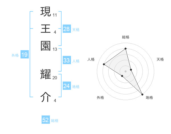 現王園 耀介さんの総格は52画の4点!