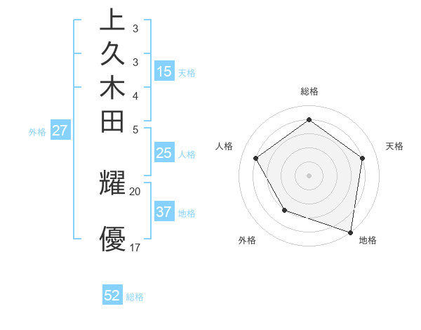 上久木田 耀優さんの総格は52画の4点!