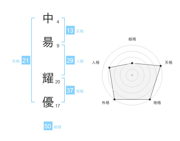 中昜 耀優さんを姓名の画数から五運を鑑定