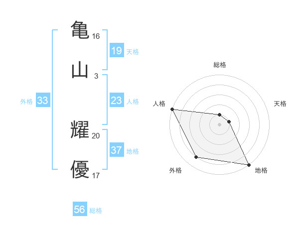 亀山 耀優さんを姓名の画数から五運を鑑定