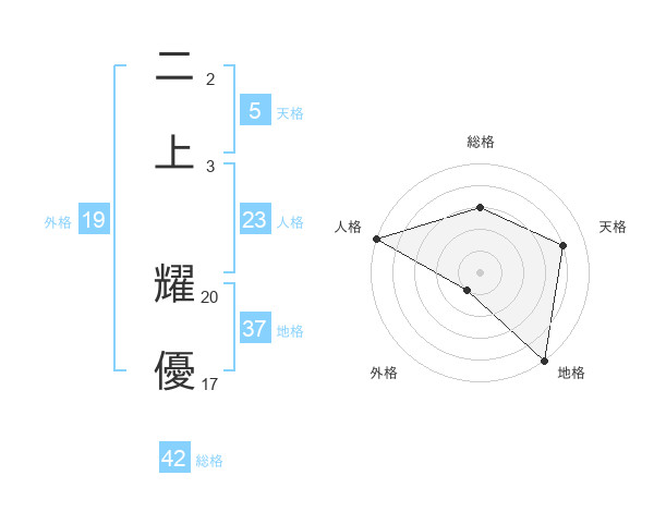 二上 耀優さんの外格は19画の1点!