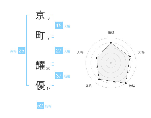 京町 耀優さんの総格は52画の4点!