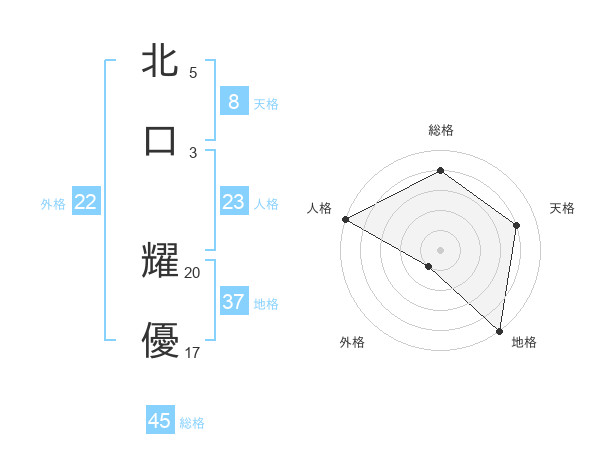 北口 耀優さんの総格は45画の4点!