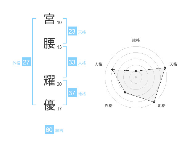 宮腰 耀優さんを姓名の画数から五運を鑑定