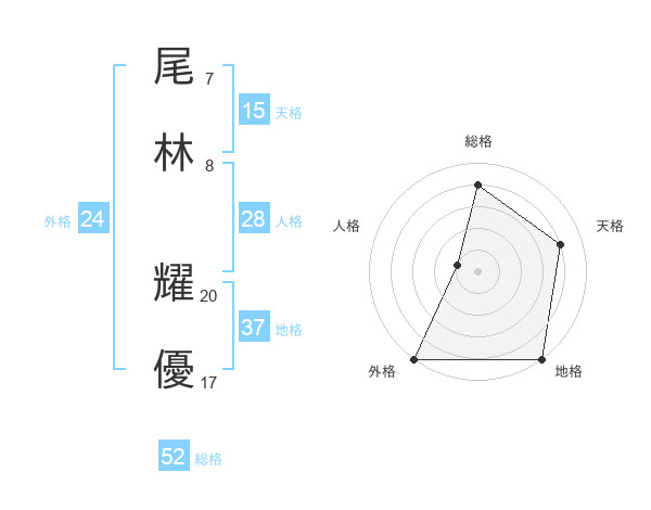 尾林 耀優さんの総格は52画の4点!