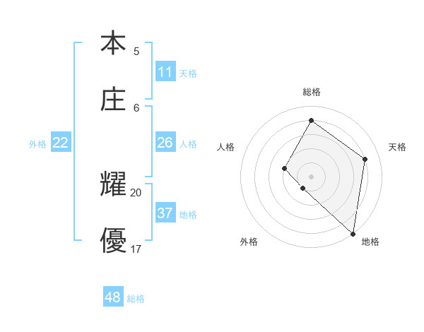 本庄 耀優さんの地格は37画の5点!