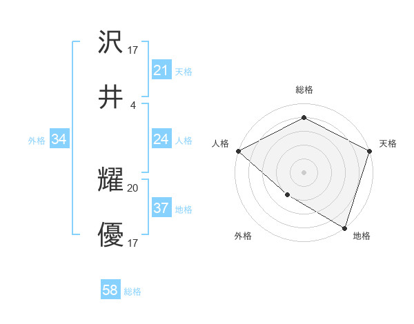沢井 耀優さんの総格は58画の4点!