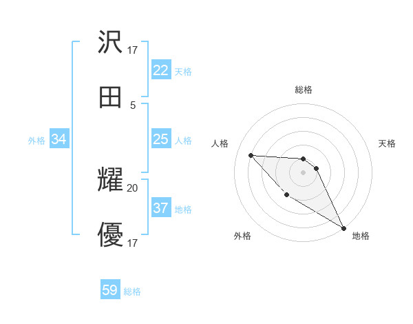 沢田 耀優さんの天格は22画の1点!