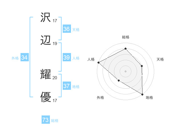沢辺 耀優さんの総格は73画の4点!