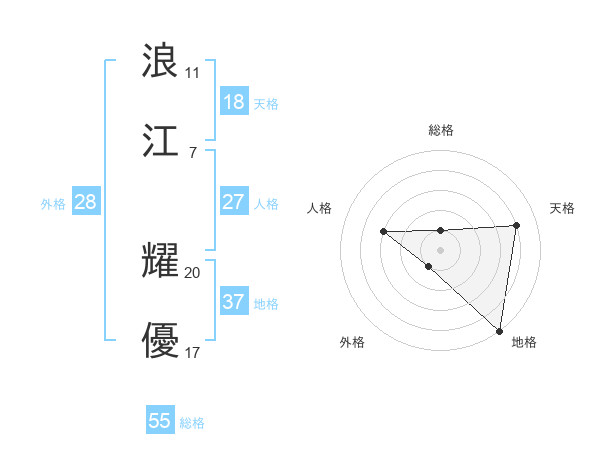 浪江 耀優さんを姓名の画数から五運を鑑定