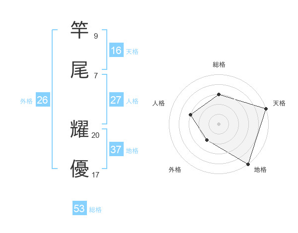 竿尾 耀優さんを姓名の画数から五運を鑑定