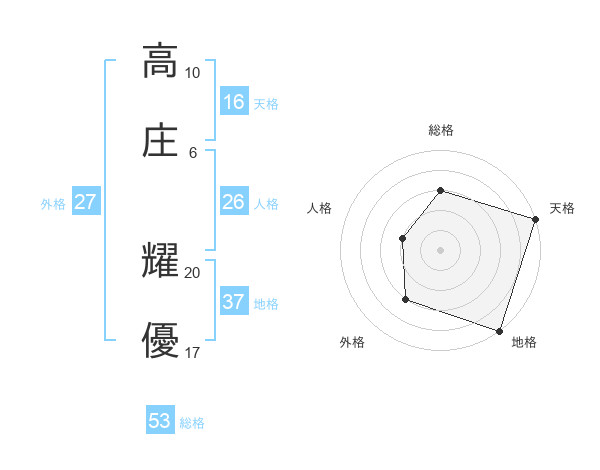 高庄 耀優さんの天格は16画の5点!