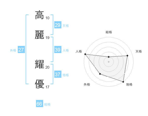 高麗 耀優さんの総格は66画の1点!