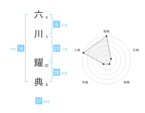 六川 耀典さんの総格は37画の5点!